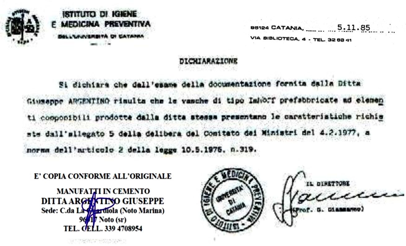 Argentino Giuseppe è produttore e distributore unico in Italia delle vasche settiche tipo Imhoff serie AG IMHOFF-DYNAMIC SYSTEM, caratterizzate dall'esclusivo design e dall'innovativo sistema di sedimentazione tipo Imhoff idrodinamico a flusso tangenziale.